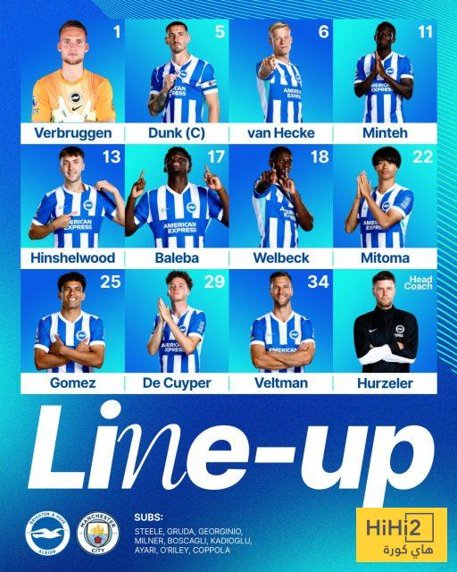 إليكم مجموعة برايتون الرسمية للقاء مانشستر سيتي: